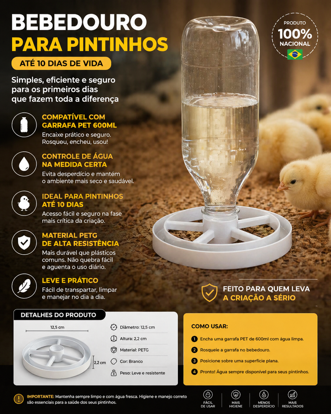 ✔ Ideal para pintinhos até 10 dias